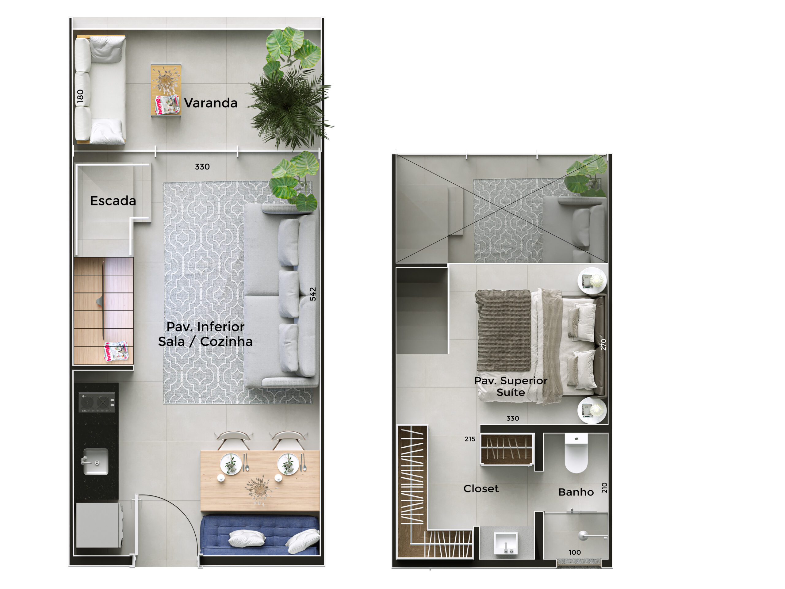 Plantas de 41m² a 42m² e 50m² a 51m²